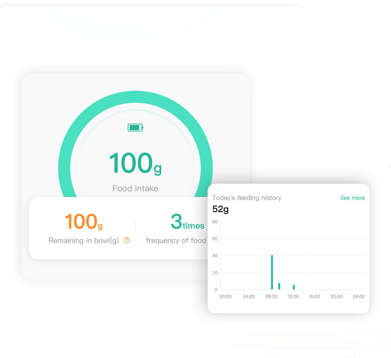 Erstellen Sie einen intelligenten Plan zur Gewichtskontrolle auf der Grundlage der Analyse chronischer Daten und sorgen Sie für eine gesunde Ernährung Ihres Haustiers, indem Sie die Zeiten, die Menge und die Dauer der Fütterung festlegen.