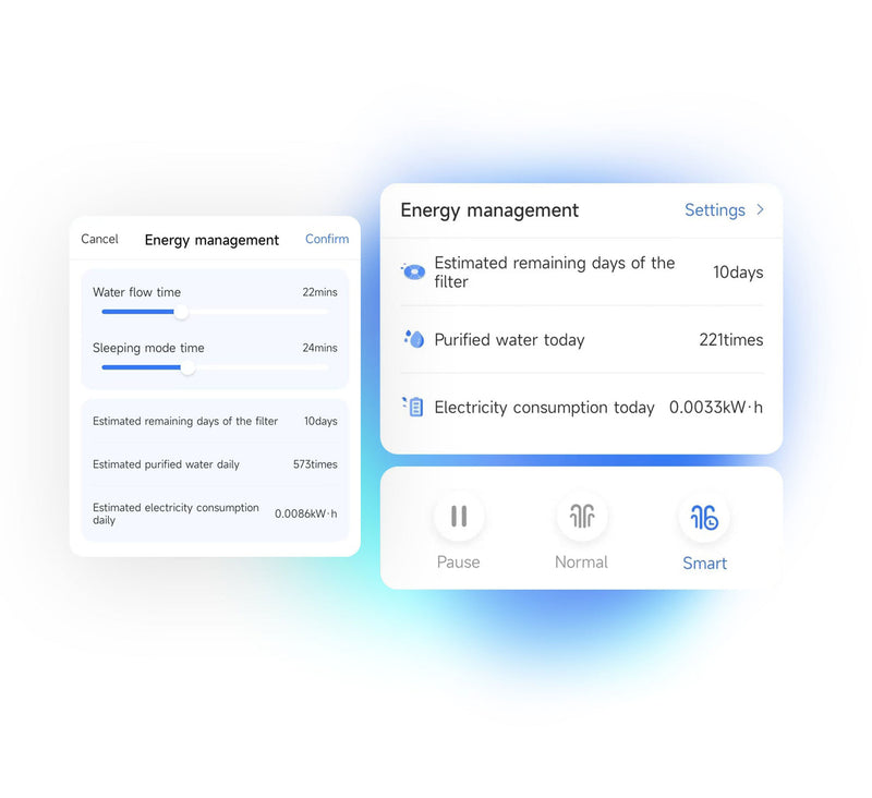 Die PETKIT APP macht es einfach, den Status des Filters und den Wasserstand im Auge zu behalten. Schalten Sie je nach Bedarf zwischen dem SMART-MODUS zum Energiesparen und dem NORMAL-MODUS, der rund um die Uhr für frisches Wasser sorgt, um.