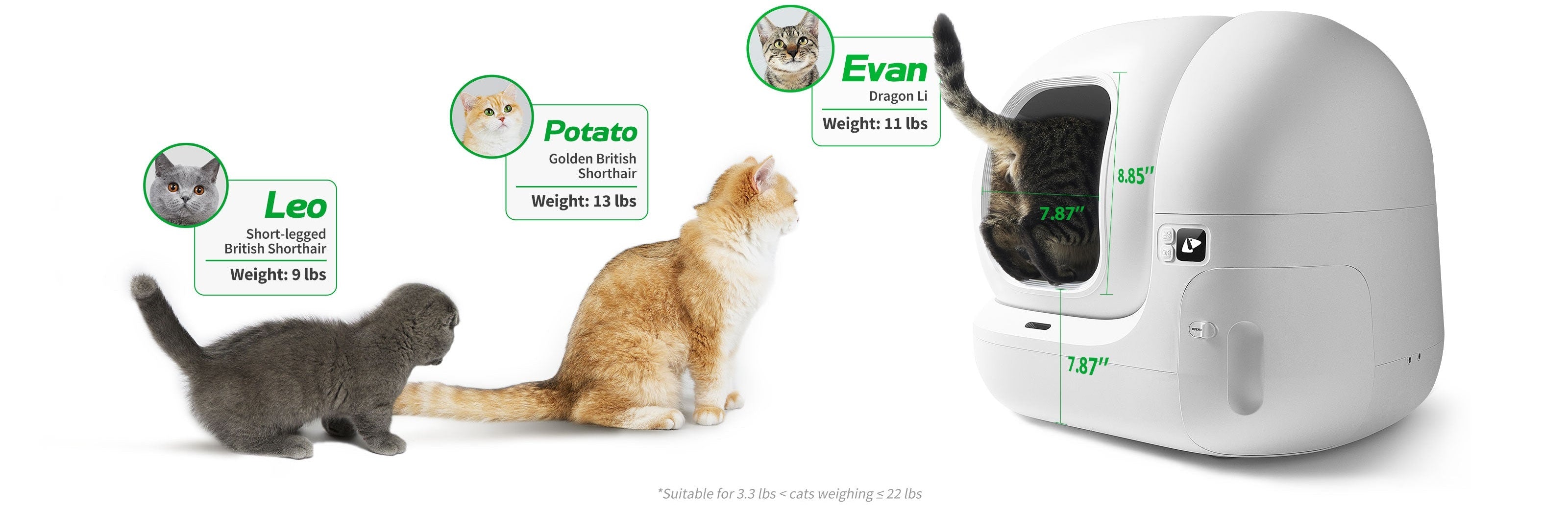 Mit einer kurzbeinfreundlichen niedrigen Schwelle und einem geräumigen Eingang für größere Katzen bietet PURAMAX 2 Platz für Katzen unterschiedlicher Größe und unterschiedlichen Gewichts.